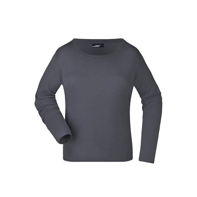 Lehce zúžené dámské triko James & Nicholson s dlouhými rukávy..Vnější materiál: 100% bavlna .Jedna tkanina.Jemný pletený pásek kolem hlubokého výstřihu.Dvojité prošití na ramenou, krku .Boční švy.Nová délka: Velikost M 64 cm .Hmotnost: 150 g / m2.Balení: