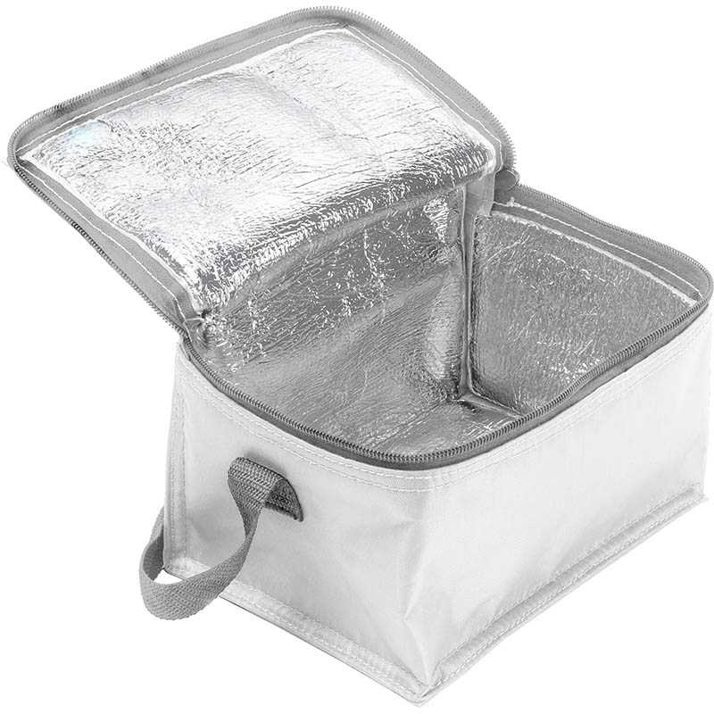 Chladící taška z hliníkové fólie na 6 plechovek. Zvenku z netkané textílie s bílými ozdobami. 80 g/m2. Izolační materiál: Pěna laminovaná hliníkovou fólií. Kapacita 3L.