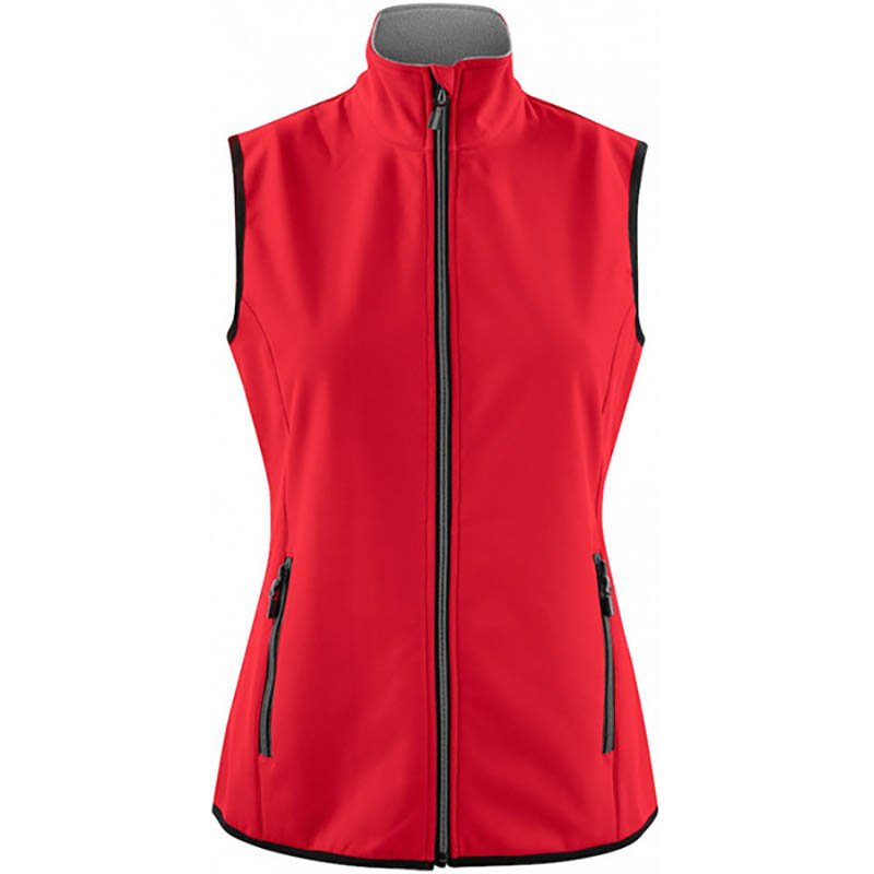 Softshell vest based on same as the jacket in bounded fabric with stretch capabilities. Two coloured zipper at front and pockets. Possible to add zip pullers in other colours matching the company logo. // 96% POLYESTER/ 4% SPANDEX, BRUSHED INSIDE // 400 RED, 600 NAVY, 632 OCEAN BLUE, 728 FRESH GREEN, 900 BLACK, 935 STEEL GREY, 100 WHITE XS - XXL