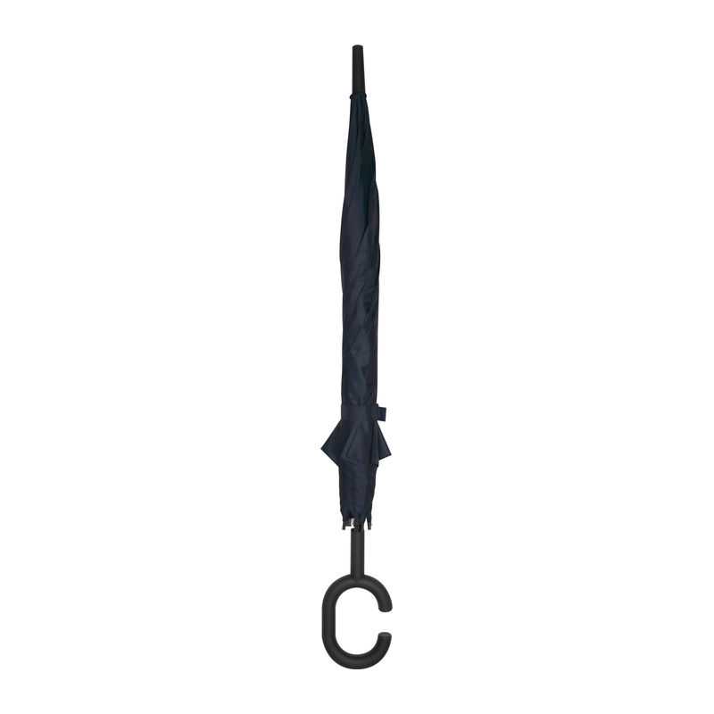 Dáždnik z Pongee materiálu s rukoväťou v tvare C, ktorú možno prakticky zavesiť na zápästie.