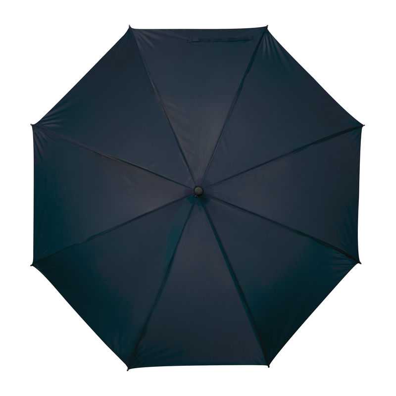 Automatický dáždnik vyrobený zo 190T polyesteru so zaoblenou drevenou rukoväťou a drevenými hrotmi.
