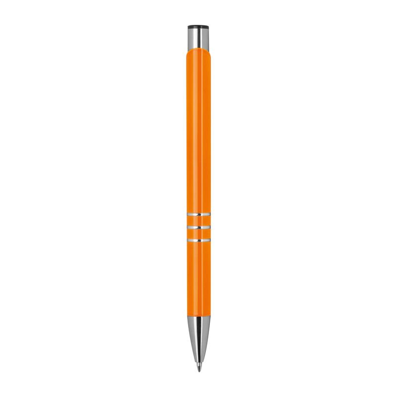 Plne lakované kovové guľôčkové pero s 3 ozdobnými prúžkami. Pero má veľkú modrú náplň.