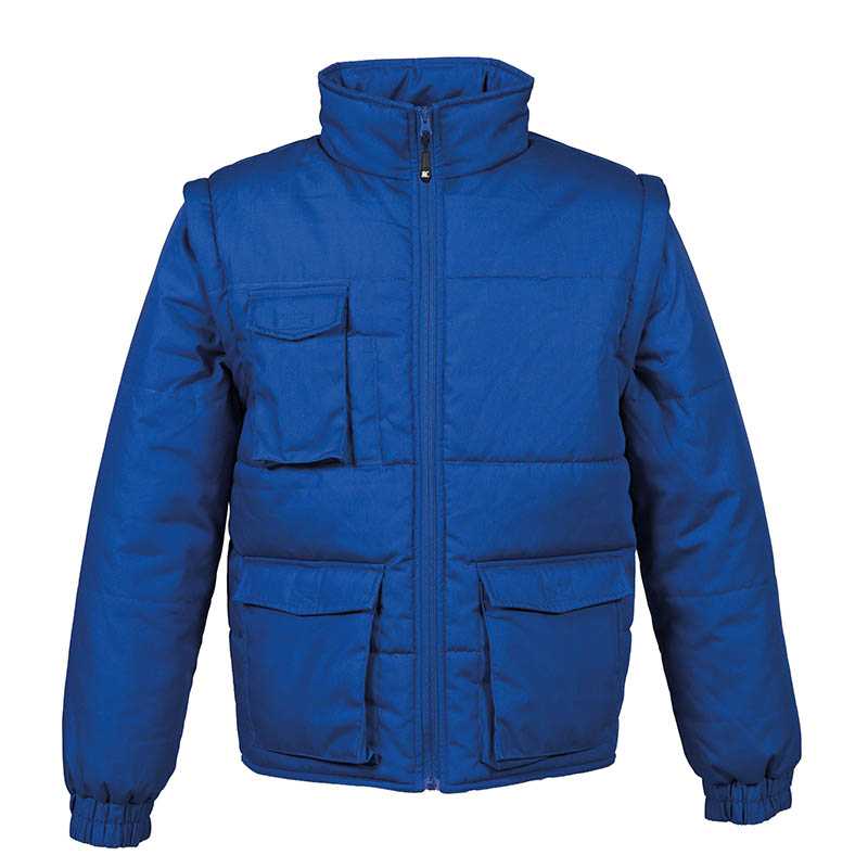 Jacket in 80% polyester 20% cotton - Polyester padding - Polyester lining - Detachable sleeves - Chest pocket with pen holder - Two pockets with zip - Two double pockets with flap and velcro closing - Inner wallet pocket with velcro closure - Elastic cuffs - One key ring hook inside pocket
