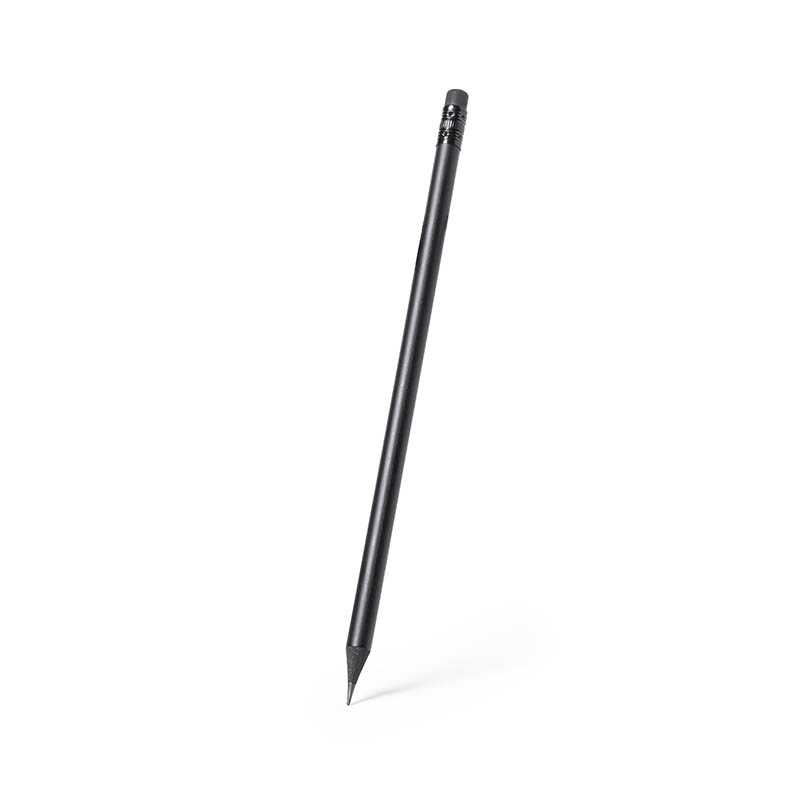 NOVINKA 2025. Elegant black pencil made of natural wood, with practical eraser and available in different colours. With black lead and sharpened tip.