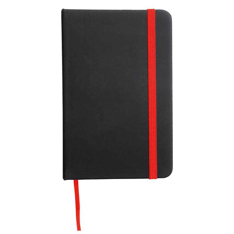 Notepad LECTOR in DIN A5 size with rounded off corners: coloured rubber band to close and coloured page margins, integrated bookmark, 80 sheets, blank, 70 g/m2