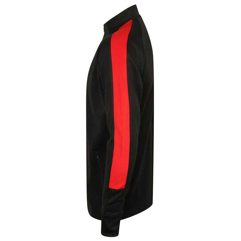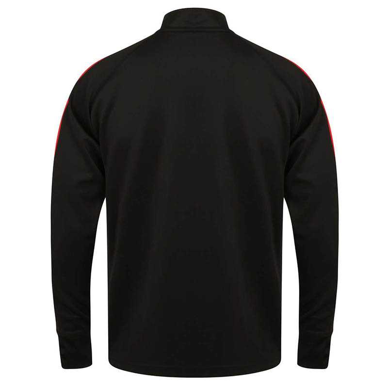 100 % polyester Interlock.Panely na vonkajších rukávoch v kontrastnej farbe.Stredový predný zips v kontrastnej farbe.Bočné vrecká na zips.Rolákový golier.1 x 1 rebrované manžety.Poloautomatické jazdce na všetkých zipsoch.