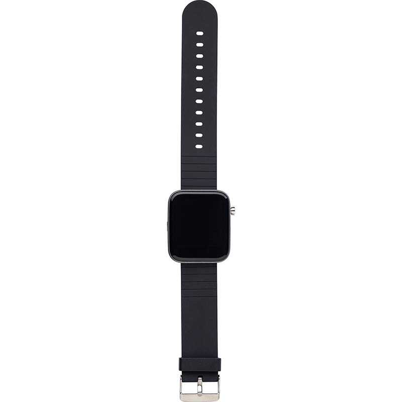 ABS and PC smart watch with TPU wristband and wireless technology. Watch has a 1,54” IPS display and is IP67 waterproof. Functions: time, steps, distance, calories, heartrate, bloodpressure, notifications, phone finder, and more. Including USB cable.
