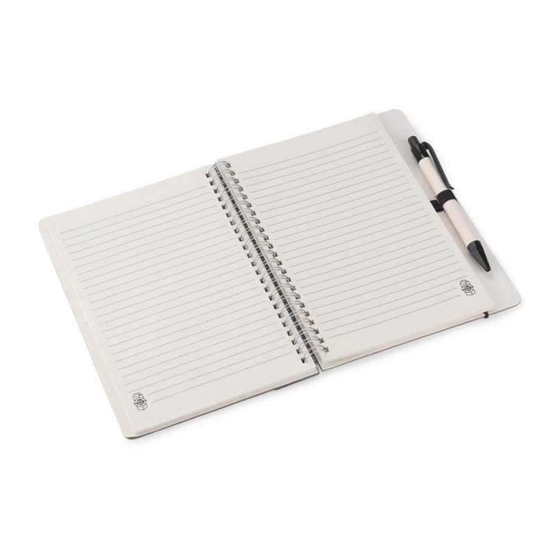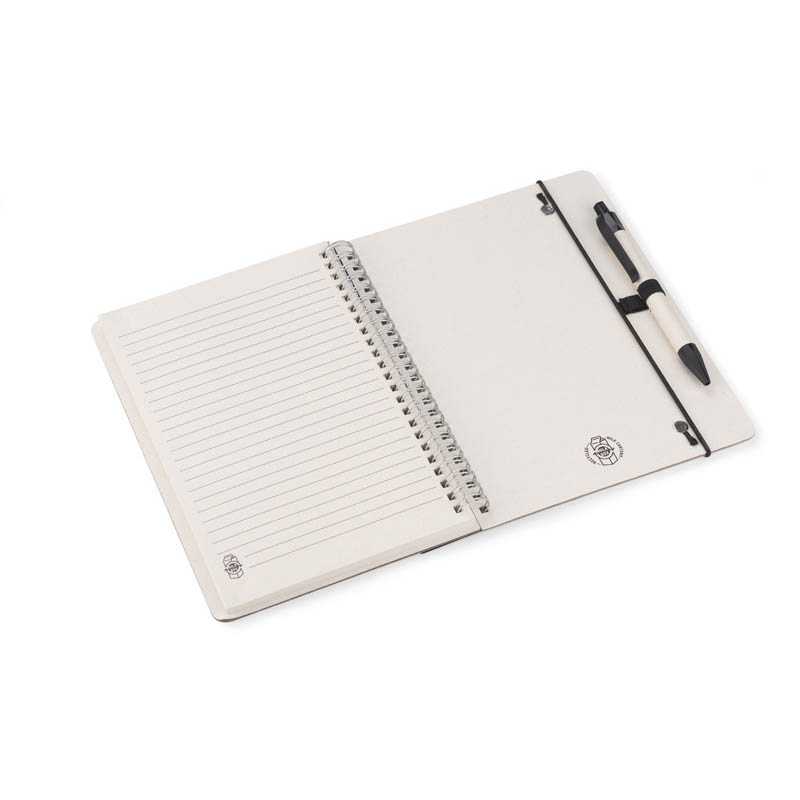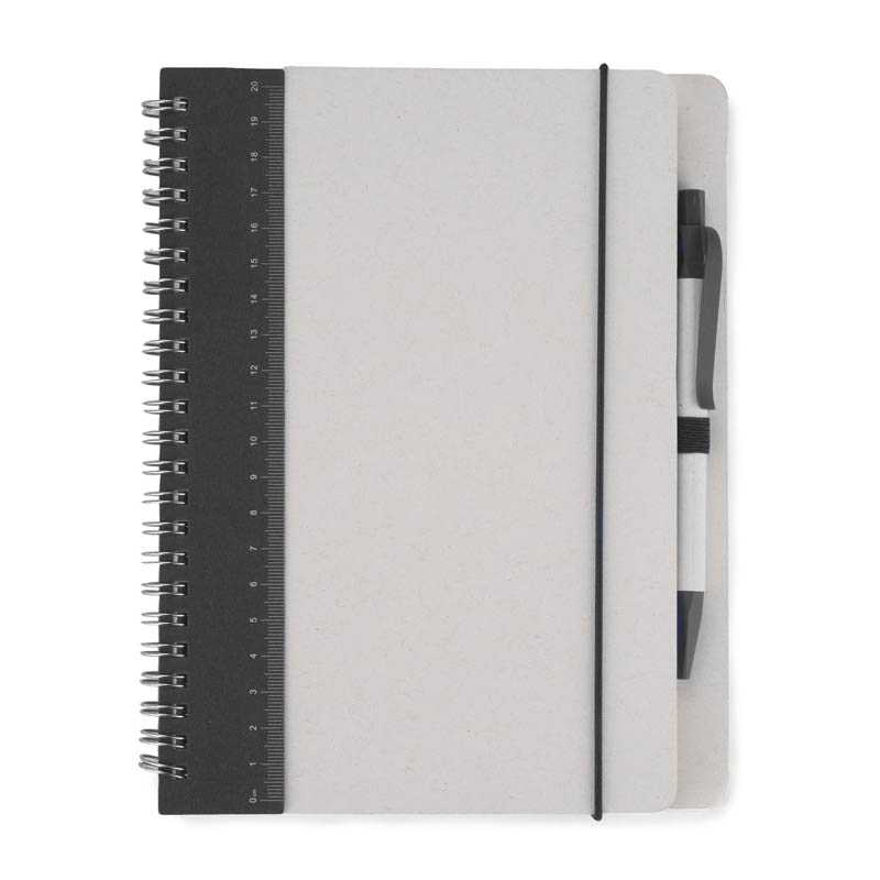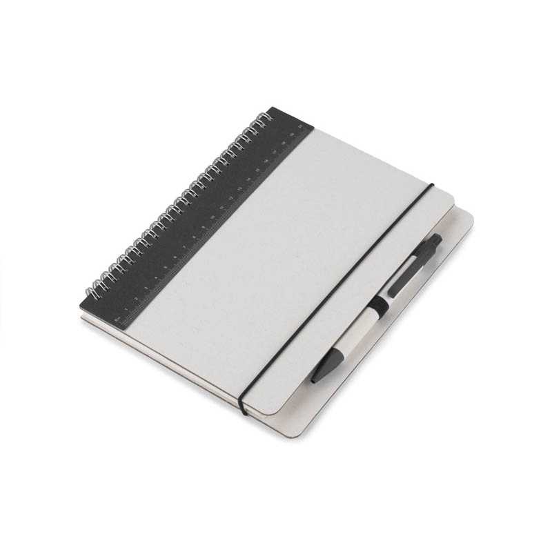 Zápisník a pero REGALI jsou vyrobeny z kartonů od mléka. Pero má modrou náplň. Zápisník je dodáván s 20 cm dlouhým pravítkem, které odpovídá barvě povrchové úpravy na peru. Guma na pero a jedna, která uzavírá zápisník v barvě povrchové úpravy pera.