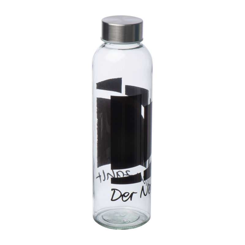 Sklenená fľaša s nepriepustným kovovým uzáverom a objemom 500 ml. Vnútro bez obsahu BPA.
