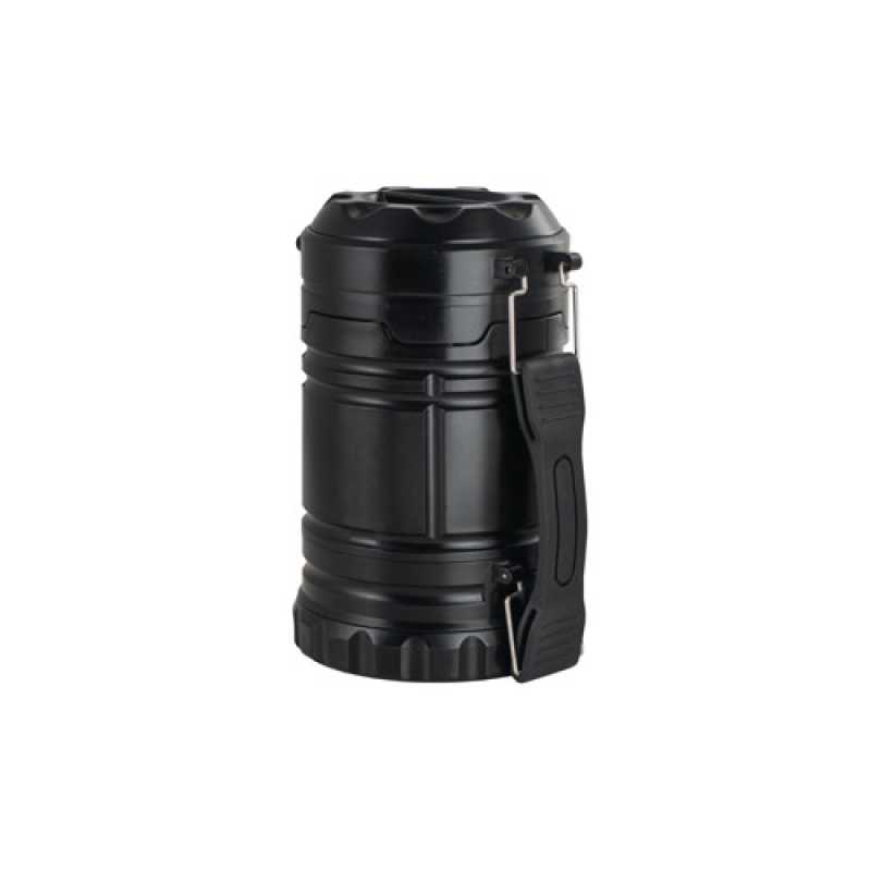 Svietidlo 2 v 1 z ABS a PS. 2 spôsoby použitia: vonkajšia alebo kempingová lampa, ktorá umožňuje osvetliť veľké plochy, alebo ako lampáš pomocou bočnej rukoväte, ktorá je tiež odnímateľná. Svietidlo má LED COB (200 lúmenov) a 1W LED. Ideálna na kempovanie alebo outdoorové aktivity. Zahŕňa 3 AA batérie. Dodávané v krabici. 87 x 140 mm