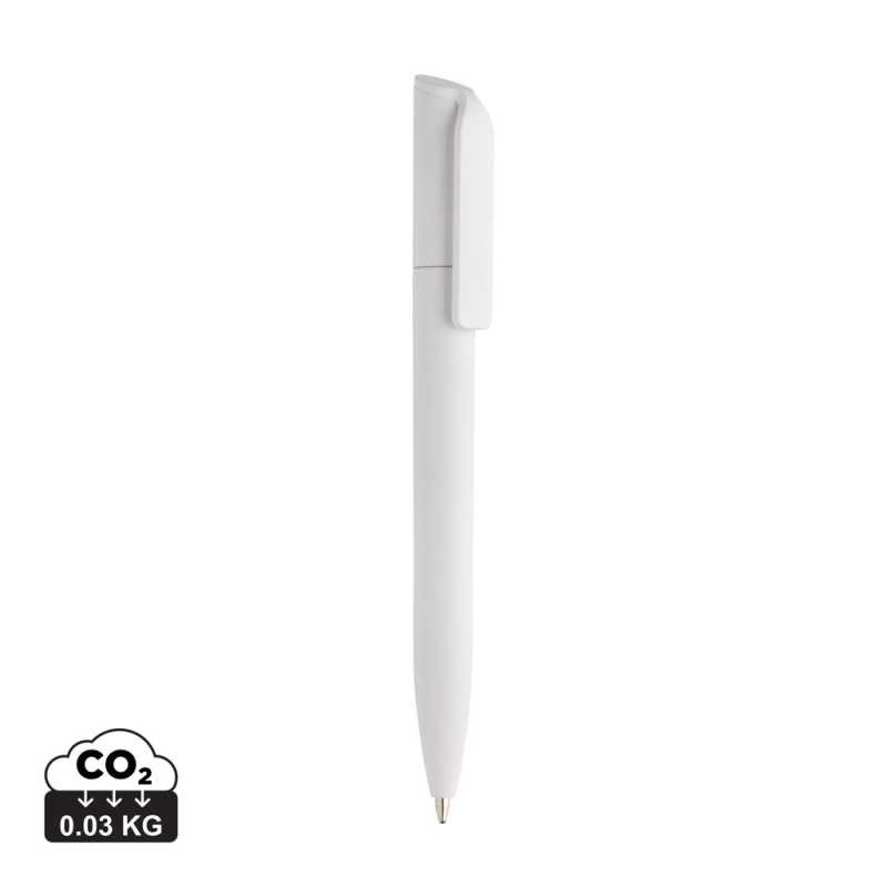 Kompaktné pero s otočným mechanizmom, šírkou hrotu 1mm, modrým atramentom Dokumental na písanie až 800 m. Vyrobené z GRS recyklovaného ABS. GRS (Global Recycle Standard) je globálny štandard, ktorý umožňuje overiť použitie recyklovaného materiálu v produkte naprieč celým dodávateľským reťazcom. Celkový podiel recyklátu podľa váhy produktu: 54%.