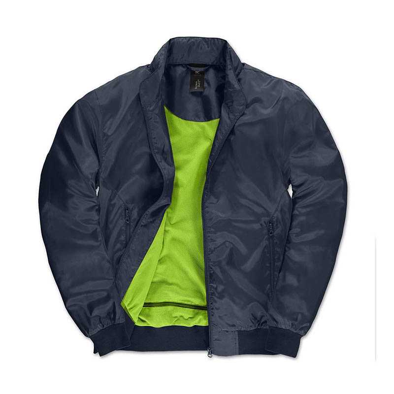 TRENDY LIGHTWEIGHT BOMBER JACKET ·Ergonomic concealed hood ·Diamond mesh lining ·Trendy lightweight bomber jacket with ergonomic concealed hood ·Fashionable contrasted mesh lining improves breathability and comfort ·Contemporary cotton feel heavy rib on cuffs and bottom hem ·Forward shoulder seams for better comfort and water protection · Zip at lower back for easy full decoration access (front - back - sleeves) ·Fabric tested for all print techniques and embroidery ·2 zipped hand pockets ·1 inner wallet pocket with velcro closing tabs. Značka:B&C. Materiál:100% polyester 210T taffeta