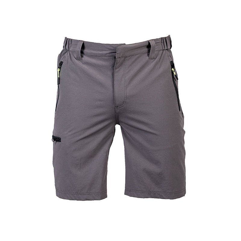 NOVINKA 2025. Short trousers in 4 way stretch fabric horizontally and vertically - Main fabric in 90% polyester - 10% elastan - Reinforcement fabric in 96% polyester - 4% elastane, abrasion resistant on the knees, insides of the legs and buttocks - Triple stitching - Two front pockets with zip - A side pocket with zip - A back pocket with zip