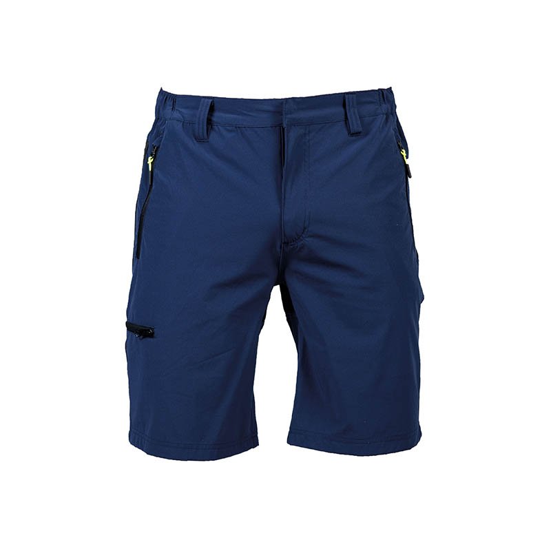 SHORT TROUSERS IN STRETCH FABRIC HORIZONTALLY AND VERTICALLY FOR MAXIMUM COMFORT - 90% nylon - 10% elastan - Black reinforcement fabric, in tear proof 400D nylon - Front and rear reflective prints - Two front pockets - Two patched pockets in tear proof fabric with covered press studs - A side pocket in tear proof fabric with removable key hook or badge holder; double pen holder and tools holder loop - Double back pocket for ruler and tools holder in anti-tear fabric and 4STRETCH logo - Two back pockets with velcro, in anti-tear fabric - Fluo yellow piping on the side and back pocket - Elastic waist and oversized loops - Covered snap button at the waist - No scratchy elements S42/44 M46/48 L50/52 XL54/56 XXL58/60 3XL62/64
