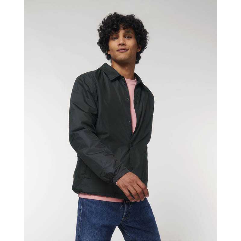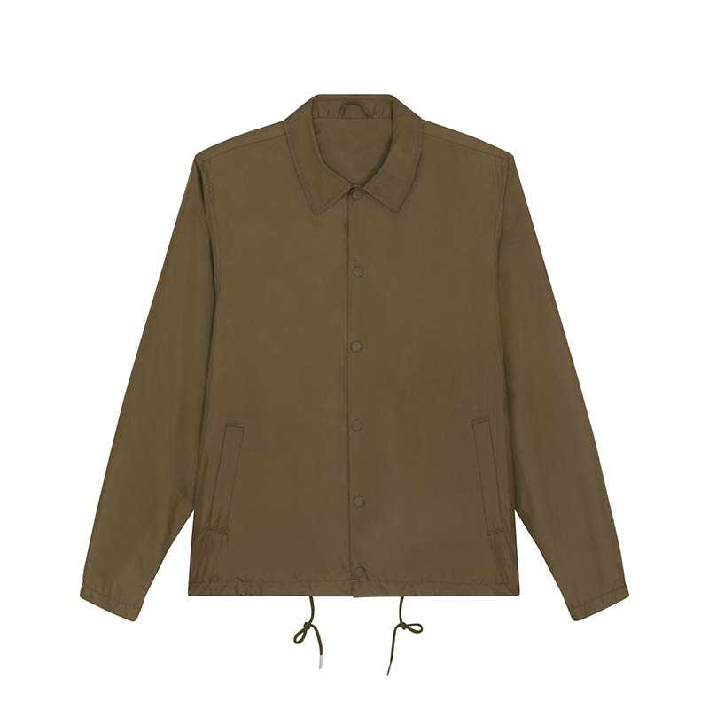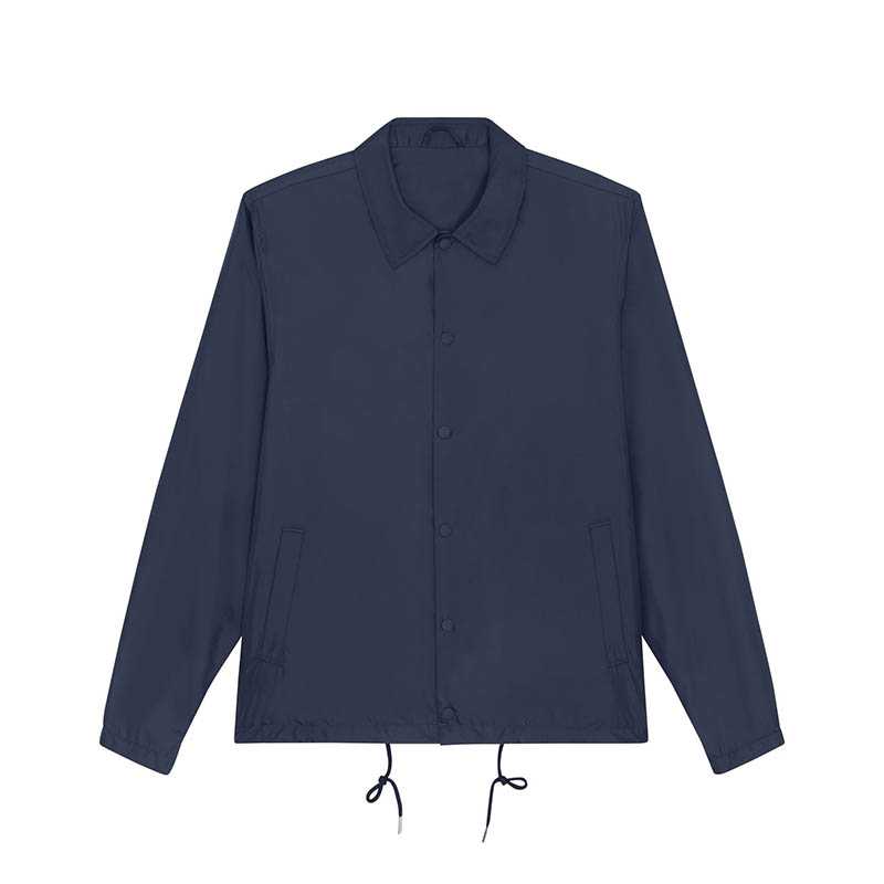 Set-in sleeve Collar with collar stand Metal snaps at center front Welt pockets at front Round drawcords at bottom hem in matching body colour with metal tipping Semi-elastic sleeve cuff Inside chest welt pocket Self fabric half moon at back neck Inside z