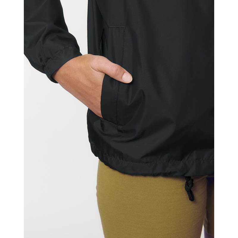 100 % polyamid.Priedušnosť 5 000 g/m2/24 h a vodoodolnosť 3 000 mm.Podlepené švy.Predný zips po celej dĺžke.2 predné vrecká na zips.1 vnútorné vrecko.Kontrastná polyesterová podšívka.Nastaviteľná kapucňa s podšívkou zo sieťoviny.Zipsový prístup na ozdobu na hrudi a na spodnom okraji.