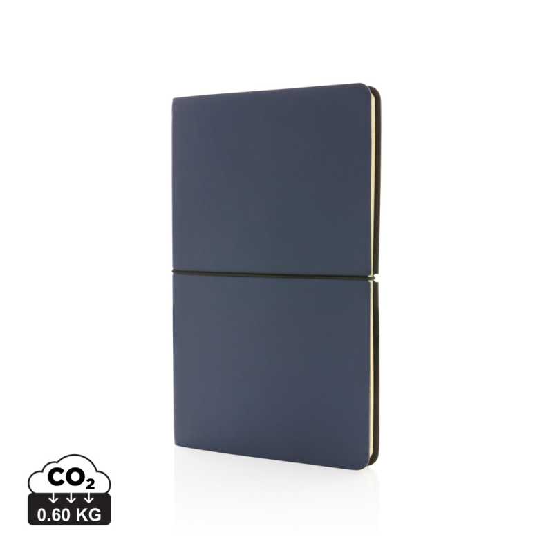 Moderný zápisník vo formáte A5 v luxusnom hladkom PU obale s jednoduchou vodorovnou elastickou gumičkou. Flexibilná mäkká väzba. Obsahuje 96 listov/192 strán krémového linajkového papiera o gramáži 90 g/m2.