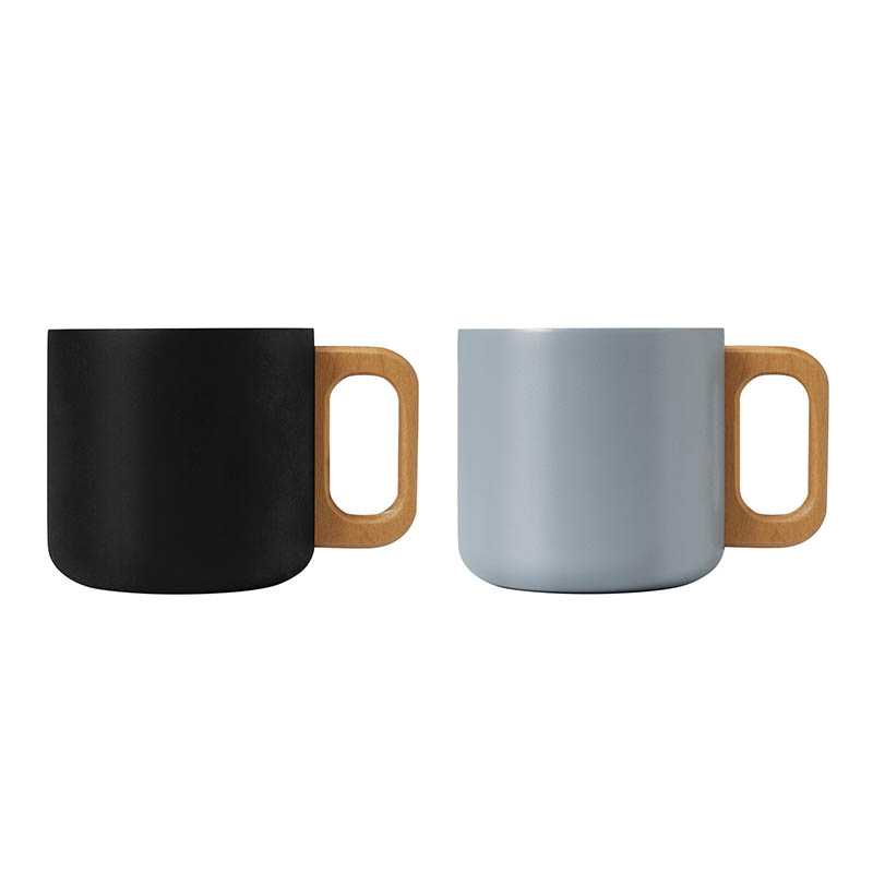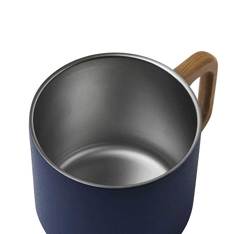 NOVINKA 2025. Stainless steel mug RUSTIC TRIP, double-walled: with wooden handle, coloured matte powder coating on the outside and silver on the inside, capacity approx. 350 ml