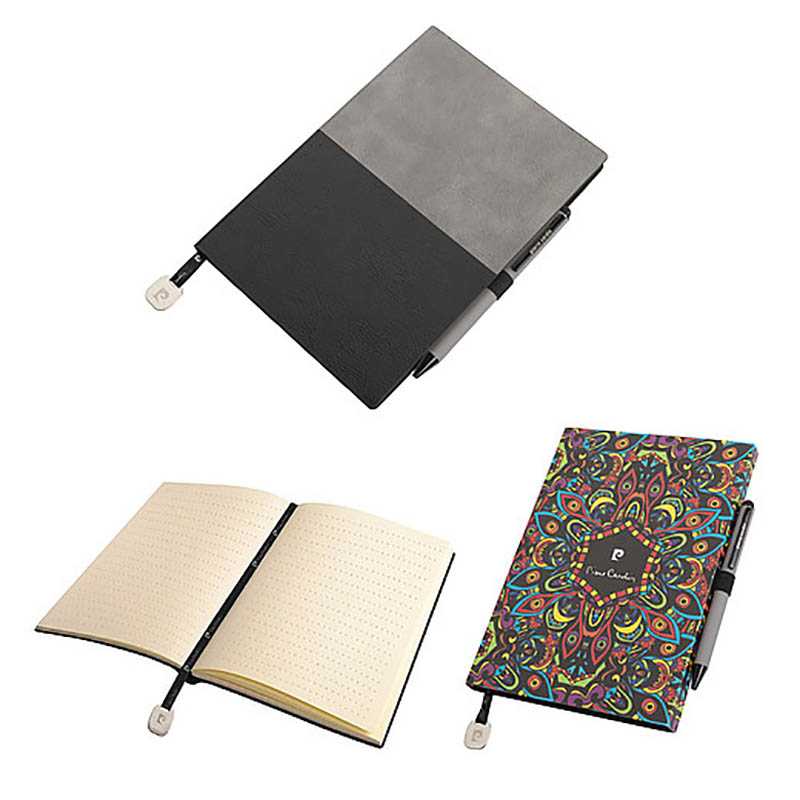 Značková súprava luxusného dvojfarebného poznámkového bloku A5 Pierre Cardin REPORTER a elegantného guľôčkového pera Pierre Cardin CELEBRATION v piatich módnych farbách. Poznámkový blok obsahuje 160 strán s bodkovanými linajkami s gramážou 80 g a textilnú záložku s kovovým príveskom s logom Pierre Cardin. Na zadnej strane bloku je vyrazené logo Pierre Cardin. Guľôčkové pero má hliníkové telo s gumenou povrchovou úpravou, ktorá je veľmi príjemná na dotyk, stylus a čierne detaily. Obsahuje kvalitnú modrú náplň s hrotom 0,7 mm. Súprava je balená v darčekovom obale Pierre Cardin, dodávaná s certifkátom pravosti. Odporúčaná technológia potlače: blok – tampónová tlač C; guľôčkové pero – gravír, UV tlač. Maximálna veľkosť potlače: blok – 50 × 40 mm; guľôčkové pero – 40 × 6 mm. Rozmery: blok 14,7 × 20,8 × 1,3 cm; guľôčkové pero 1 × 14 cm; balenie 20,8 × 16,2 × 1,4 cm. Kartónové množstvo v ks: 5.
