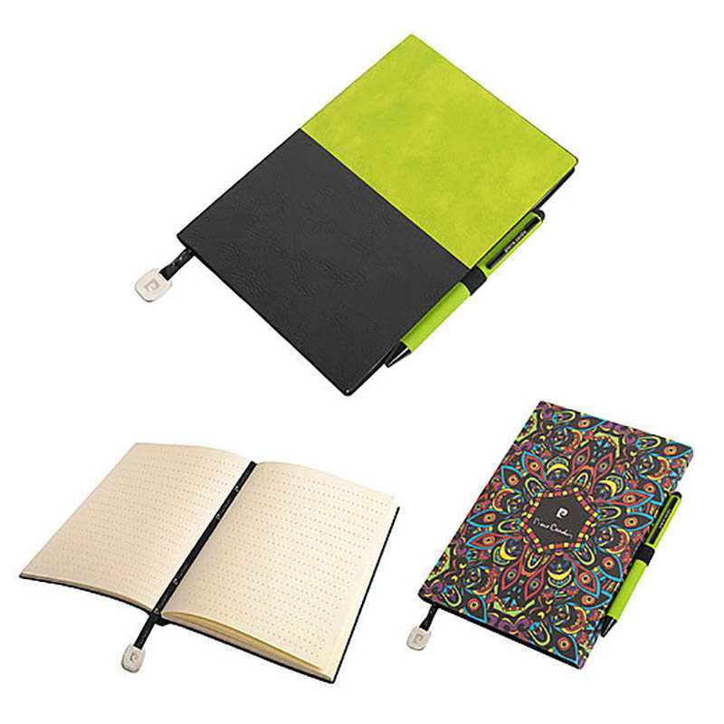 Značková súprava luxusného dvojfarebného poznámkového bloku A5 Pierre Cardin REPORTER a elegantného guľôčkového pera Pierre Cardin CELEBRATION v piatich módnych farbách. Poznámkový blok obsahuje 160 strán s bodkovanými linajkami s gramážou 80 g a textilnú záložku s kovovým príveskom s logom Pierre Cardin. Na zadnej strane bloku je vyrazené logo Pierre Cardin. Guľôčkové pero má hliníkové telo s gumenou povrchovou úpravou, ktorá je veľmi príjemná na dotyk, stylus a čierne detaily. Obsahuje kvalitnú modrú náplň s hrotom 0,7 mm. Súprava je balená v darčekovom obale Pierre Cardin, dodávaná s certifkátom pravosti. Odporúčaná technológia potlače: blok – tampónová tlač C; guľôčkové pero – gravír, UV tlač. Maximálna veľkosť potlače: blok – 50 × 40 mm; guľôčkové pero – 40 × 6 mm. Rozmery: blok 14,7 × 20,8 × 1,3 cm; guľôčkové pero 1 × 14 cm; balenie 20,8 × 16,2 × 1,4 cm. Kartónové množstvo v ks: 5.