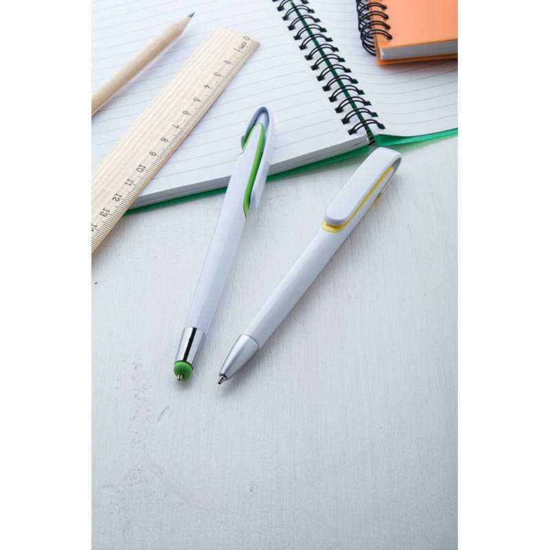 Plastové guľôčkové pero. Dodáva sa s modrou náplňou.