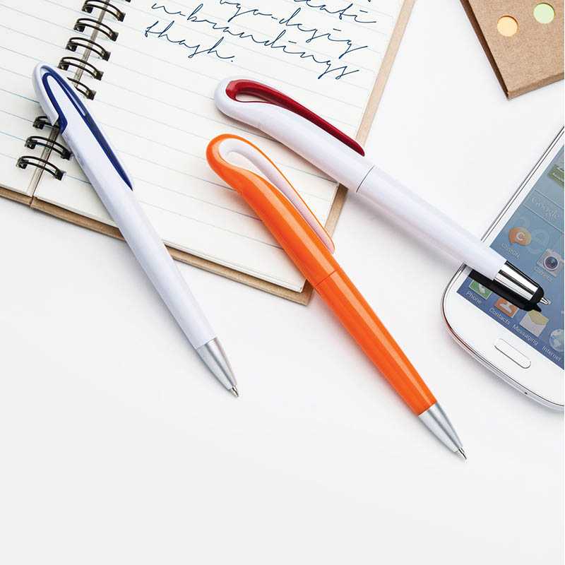 Plastové guľôčkové dotykové pero s farebným telom a čiernymi časťami, s modrou náplňou.