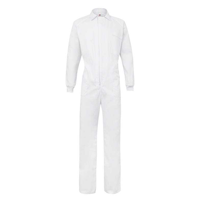 TWO-TONE OVERALL 65% polyester- 35% cotton - Covered full zip - Mandarin collar with velcro closure - Piping on collar, sleeve, chest and back - One chest pocket with double pen holder - Two opened pockets on front side - Elasticized fabric at waist on back side - Elasticized cuffs with velcro closure