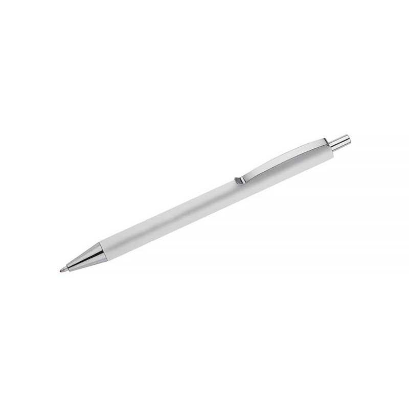 Otočné guľôčkové pero 2v1 z recyklovaného hliníka a pero bez atramentu. S modrou náplňou a špičkou z kovovej zliatiny, ktorá oxiduje papier. Toto pero píše podobne ako ceruzka a navyše je stierateľné.