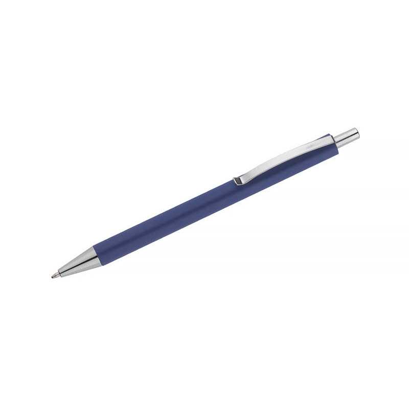 Propiska NOVI s příjemným na dotek gumovaným povrchem a chromovanými prvky stříbrné barvy. Náplň modré barvy.