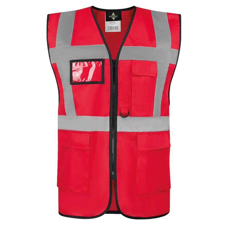 Korntex® Bezpečnostná vesta Comfort Executive Hamburg - multifunkčná s vreckami.Norma: EN ISO 20471: 2013/A1: 2016.Neónová zelená a neónová ružová EN 17353: 2020 typ AB3, ostatné farby EN 17353: 2020 typ B3.Materiály: STANDARD 100 by OEKO-TEX®.5 cm široký reflexný pruh okolo tela.Dva 5 cm široké reflexné pruhy cez obidve ramená.Zips vpredu.Dve vrecká s chlopňami na suchý zips.Multifunkčné vrecko na preukaz, veľké vrecko na smartfón.Priehradka na perá.Výrobca garantuje reflexné vlastnosti podľa normy EN na 25 pracích cyklov pri 60°C.Vybavené čiarovým kódom EAN.Návod na použitie v 24 úradných jazykoch EÚ.Jednotlivo balené v polybagu.