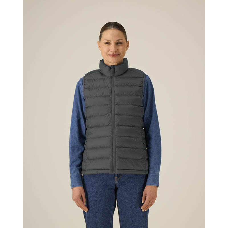 NOVINKA 2025. Sleeveless High collar Reverse nylon zip at center front Zipped welt pockets with extra grosgrain puller Elastic tape binding at armhole Fully quilted Side panels for better shape Inside seams with binding finish Bo