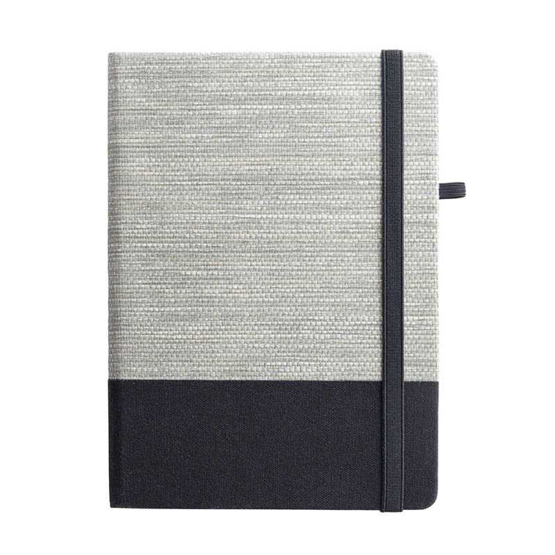 Poznámkový blok vo formáte A5 s tvrdými doskami a zaoblenými rohmi, vyrobený z prírodných slamených vlákien a bavlneného plátna. Tento zápisník má 192 linkovaných bielych listov. záložku vo forme stuhy, elastickú gumičku a držiak na pero (pero nie je súčasťou balenia). 150 x 210 mm