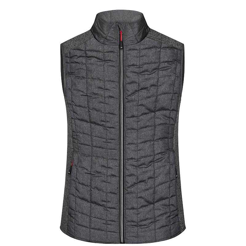 Zateplená, prošívaná vesta Tkanina je snadno udržovatelná, z recyklovaného polyesteru Díky BIONIC-FINISH®ECO odpuzuje vodu a nečistoty Velmi teplá díky výplni sorona®AURA Zip po celé délce, límec stojáček s drukem uprostřed 2 boční kapsy na zip, vnitní ka