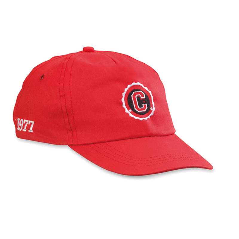 Cotton twill cap with five panels and an adjustable plastic fastening.