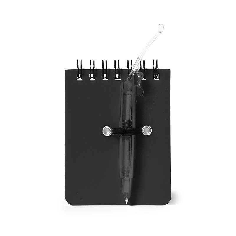 Notebook with, 25 self-adhesive memo sheets, 125 writable page markers, business card holder and elastic closure.