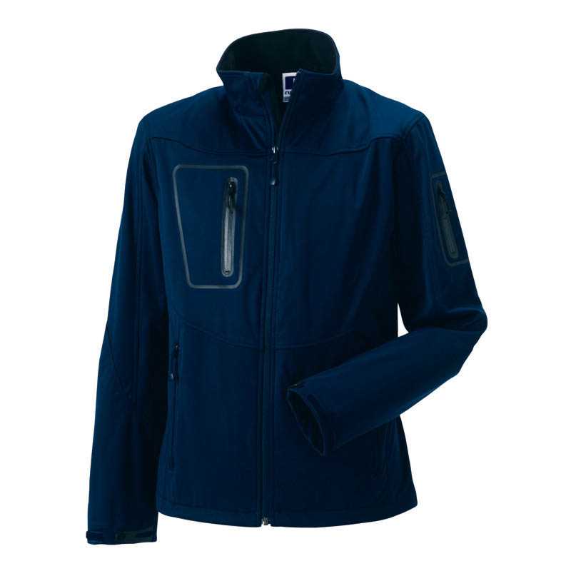 RUSSEL COLLECTION, Engineered for high activity. Maximum thermoregulation and excellent moisture transfer make this softshell jacket perfect for active wearer requirements. Engineered for high activity: natural stretch fabric for maximum body response, articulated elbows for freedom of flex and cool fit underarm panels. Značka : RUSSELL COLLECTION . Materiál : 100%PES,250g/m2