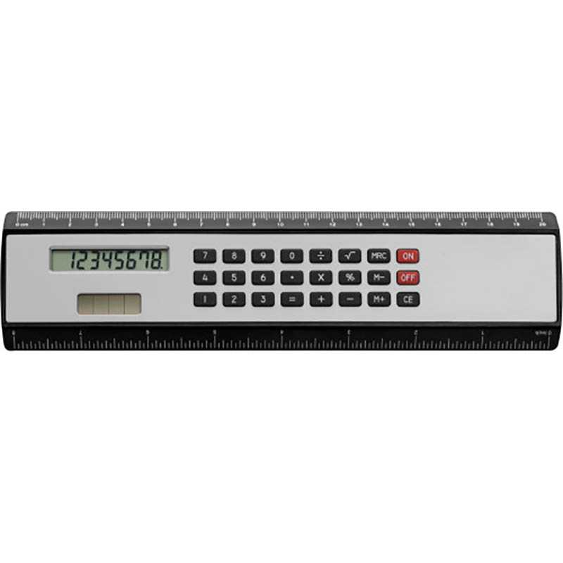 ABS ruler (20 cm) with a solar powered eight-digit calculator.