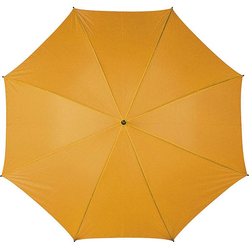 Polyester (210D) golf umbrella with eight panels. Metal frame and EVA foam handle. Including sleeve with carry strap.
