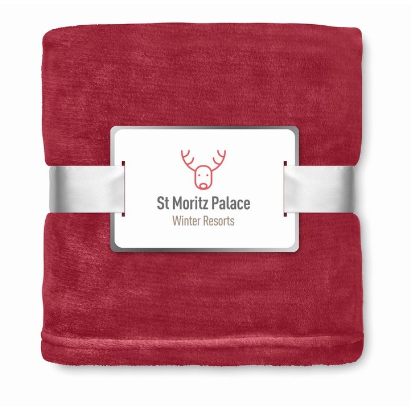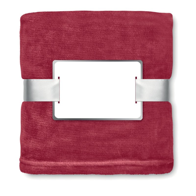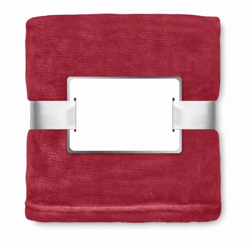 Příjemná fleecová deka 240 g/m2 přebalená stuhou s kartičkou pro potisk.