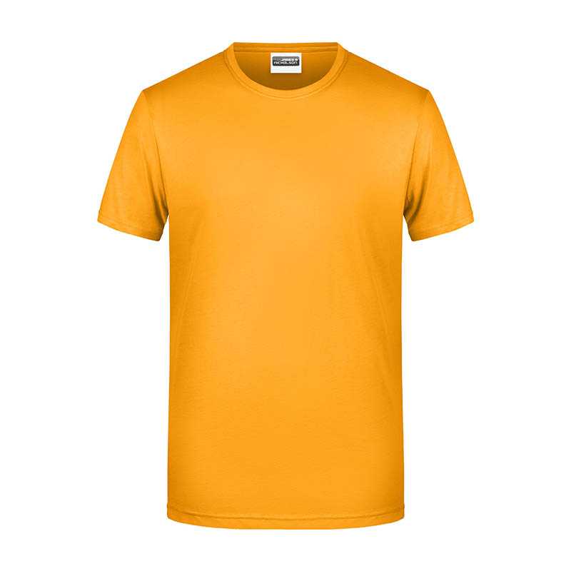 100% ring-spun cotton, single jersey, GYH: 85% cotton / 15% viscose, collar with rib binding, small size label in the collar, care label in the side seam, Regular Fit, side s