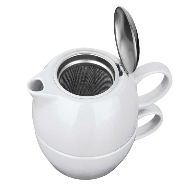 Porcelánový set na čaj 2 v 1 – kanvička so sitkom z nerezovej ocele s objemom 400 ml, hrnček 200 ml. Dodávané v darčekovej krabičke. o113 x 140 mm