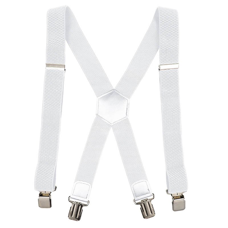 Braces with X-Back.Made of high-quality and durable strong elastic tape for greater retention. Double metal clips with teeth for a better grip on the bottom garment. Metallic sliders with prongs that allow the suspenders to be adjusted to size and kept tensioned for a better fit. X-back with hexagonal embellishment and on the back clips with imitation leather fabric for an elegant finish and easy customisation. Suitable marking methods (on the outer hexagonal area): vinyl application, transfer printing, screen printing. Ideal as a complement to uniforms and corporate uniforms.