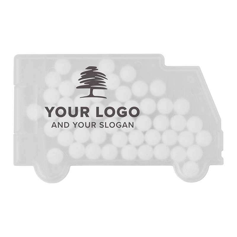 Truck-shaped mint card with approximately 5,5 grams of sugar free mints.