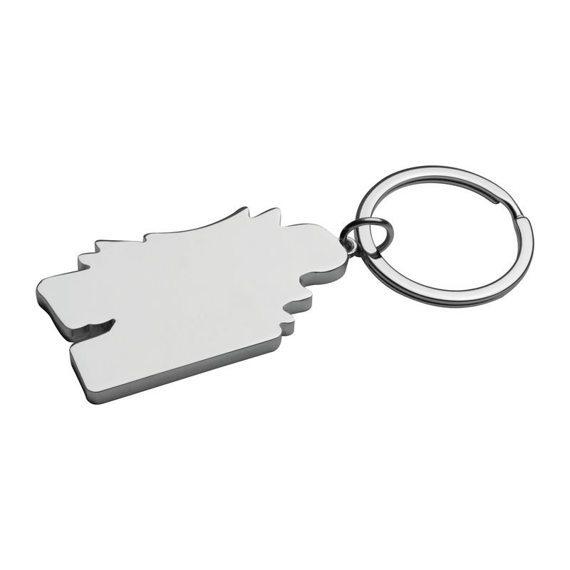 Kovová kľúčenka s farebným lakovaním vpredu.