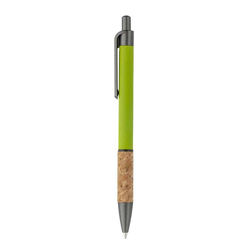 Aluminum pen with cork handle, burnished clip, top and tip