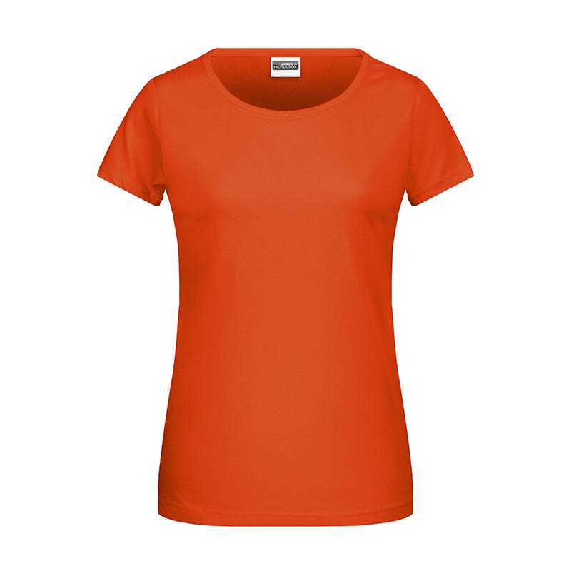Crewneck T-shirt for women. 2-layered stretch rib in the neck. Oeko-tex certified. • 100% ring-spun, combed and enzyme-washed cotton • 180 g/m2 • 100 white, 120 grey melange (95% cotton, 5% viscose), 121 ash (95% cotton, 5% viscose), 400 red, 484 dusty red, 514 summer blue, 555 faded blue, 600 navy, 784 aloe green, 900 black • XS–XXL