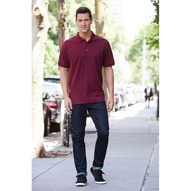 203,0 G/m2 (biela 196,0 G/m2).35 % bavlna, 65 % polyester.Eurofit – uhladenejší strih v oblasti ramien a rukávov.Technológia DryBlend®: poskytuje vlastnosti odvádzajúce vlhkosť.Bočné švy s bočnými vetracími otvormi.Olemovaný golier a manžety.Štítok na krku s potlačou a dvojitý saténový štítok na ramene, prechod na odtŕhací štítok.Čistá upravená chlopňa so zosilnenou spodnou časťou.2 farebne zladené gombíky.Spodný lem s dvojitým prešívaním.