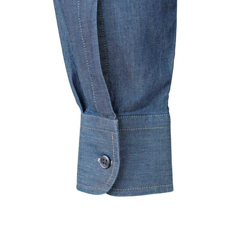 Denim shirt. Player’s choice fitting. Button down collar, adjustable sleeve cuffs. Chest pocket on both sides. Checked pattern contrast on the inside of yoke and cuffs. Slightly curved bottom hem. · 100% cotton · 592 light denim, 992 black · S–XXXL