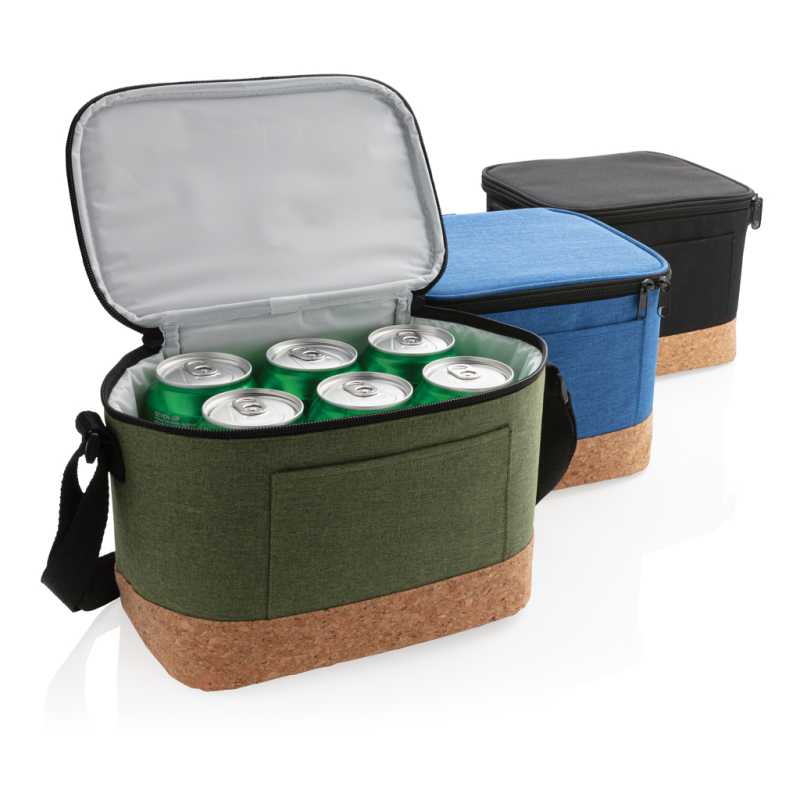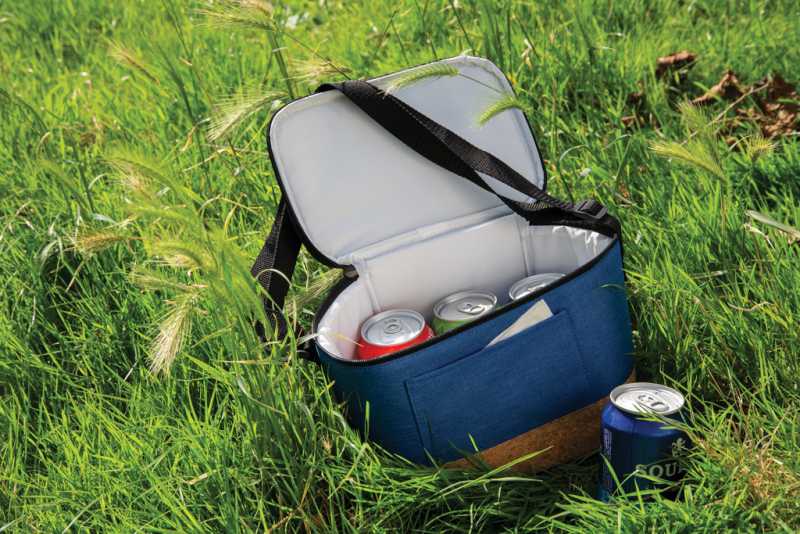 Moderná chladiaca taška vyrobená z dvoutónového polyesteru s využitím korku na spodnej strane. Priestor pre uchovanie až 6 plechoviek. Vrátane ramenného popruhu.