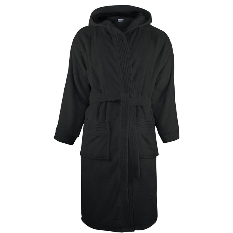 Župan (350 g/m2) z bavlny (82 %) a z recyklovanej bavlny (18 %). Z mäkkej tkaniny, s nastaviteľným opaskom a 2 vreckami (jedno na každej strane). S certifikáciou OEKO-TEX. Vyrobené v Európe. Veľkosti: L/ XL | 660 x 1190 mm